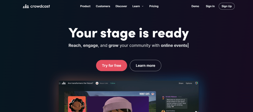 Crowdcast is built for online engagement first. It focuses on real conversation instead of lifeless broadcasting. Audiences chat, ask questions, watch replays, and stay connected after the event. For creators, coaches, and marketers, this makes Crowdcast one of the best virtual event engagement platforms available.